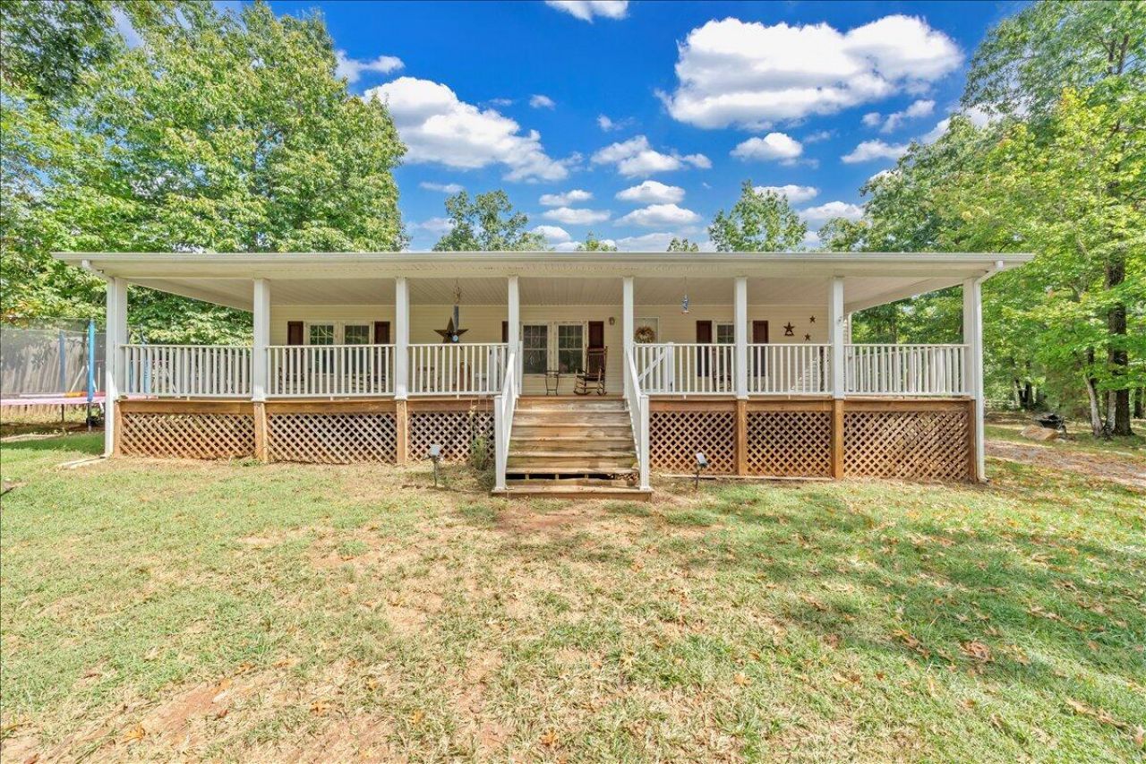 Discover this beautiful one-level living home, perfectly situated on an expansive acre lot in a tranquil rural area but close to lake shops and restaurants! This gem features three spacious bedrooms and two well-appointed bathrooms, offering ample space for family or guests. A convenient office space/playroom/ craft room option adds versatility, making it ideal for remote work, study or play. The inviting front porch, complete with a classic rocking chair, is perfect for enjoying peaceful moments outdoors. Fresh paint throughout the interior enhances the bright and airy feel of the home, while the expansive yard provides plenty of room for outdoor activities and gatherings.A detached garage and workshop complete this exceptional property,